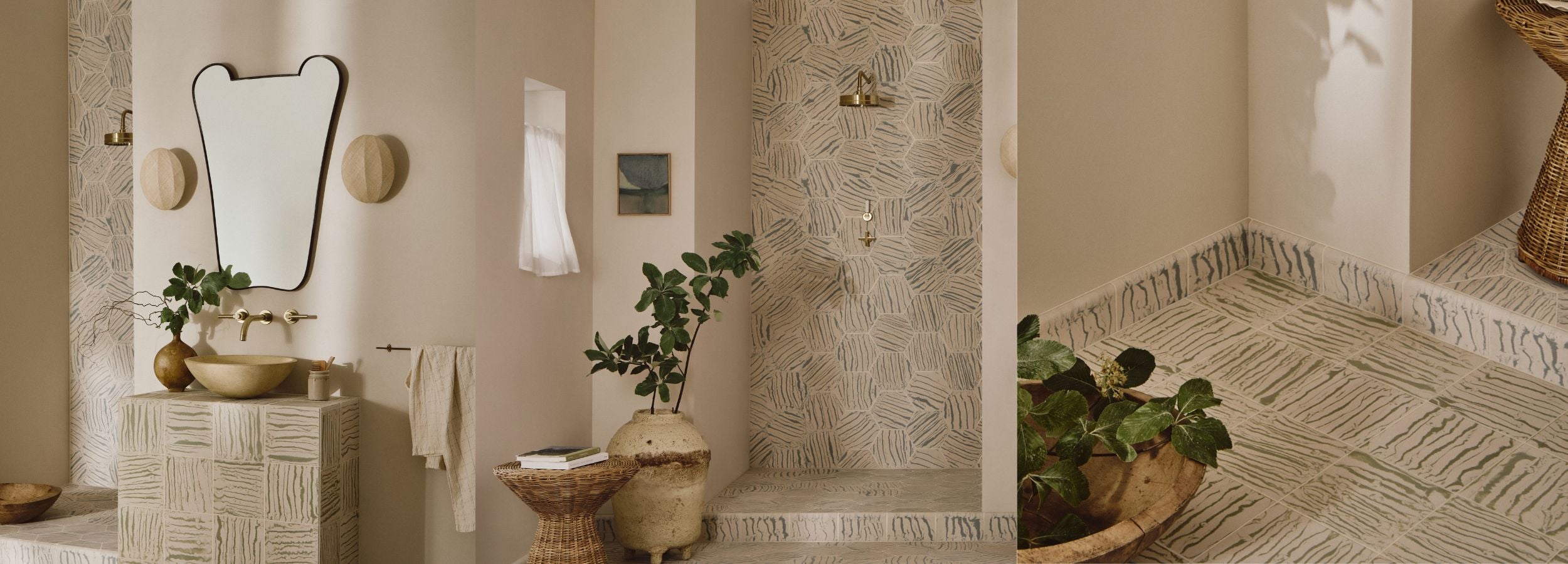 This collection showcases two innovative designs – a glazed print tile and a hand-poured finish tile. These designs beautifully capture Henry Holland Studio's unique style inspired by the traditional nerikomi ceramic technique, reimagined in tile form.