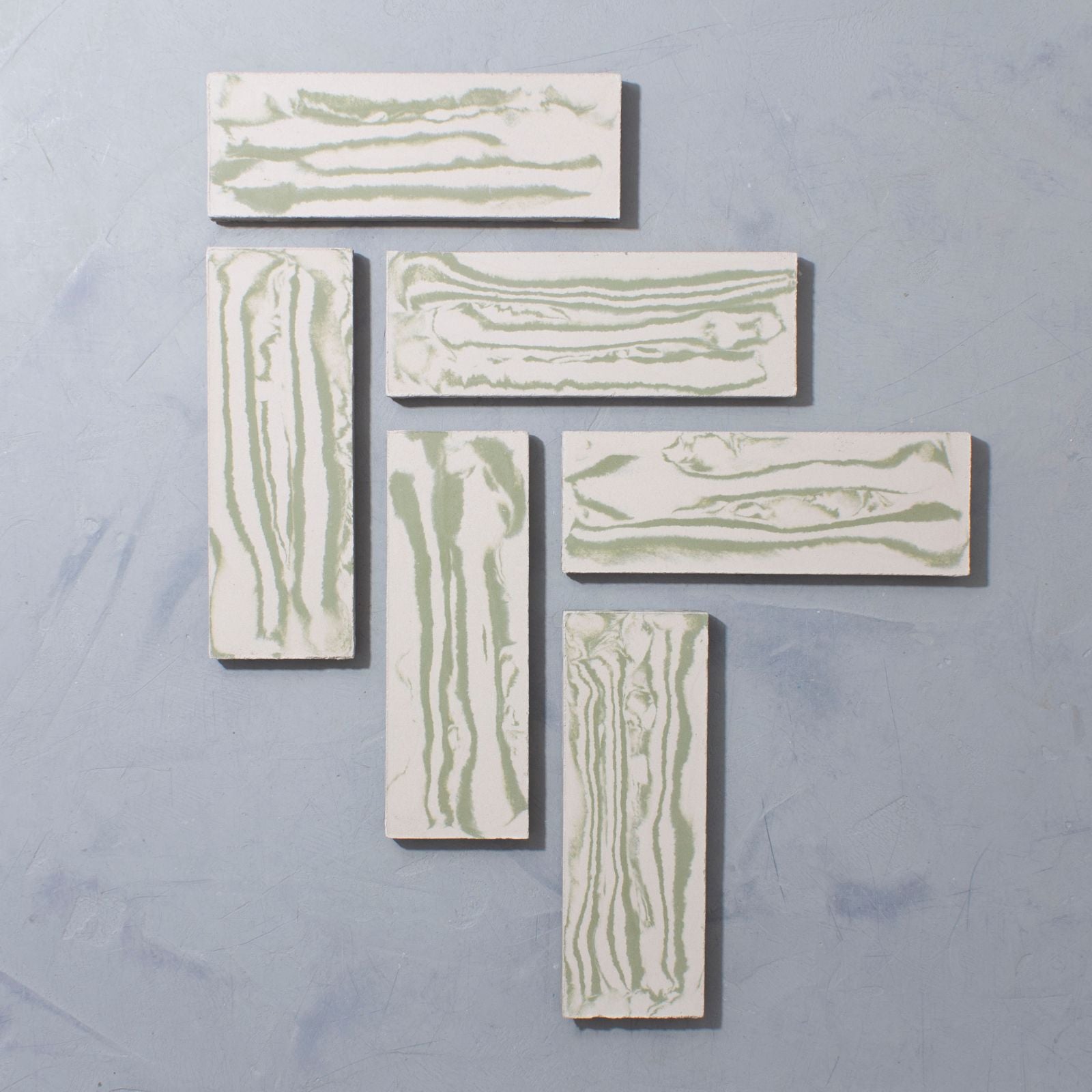 This collection showcases two innovative designs – a glazed print tile and a hand-poured finish tile. These designs beautifully capture Henry Holland Studio's unique style inspired by the traditional nerikomi ceramic technique, reimagined in tile form.